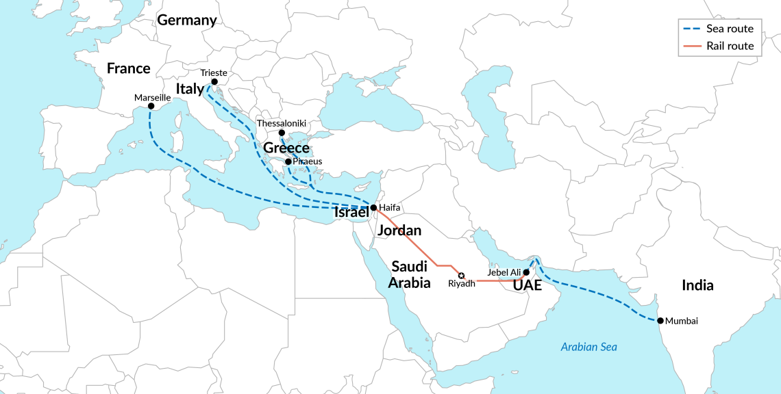 İsrail başbakanı Netanyahu 2023 yılında düzenlenen 78’inci BM Genel Kurulunda yaptığı konuşmasında, IMEC projesini ufukta görünen bir nimet olarak tanımladı. Hindistan’ı deniz bağlantıları, demir yolu bağlantıları, enerji boru hatları ve fiber optik kablolarla Avrupa’ya bağlayacak bu projeyi; “Sadece İsrail ile komşularımız arasındaki engelleri yıkmayacağız. Asya’yı BAE, Suudi Arabistan, Ürdün, İsrail ve Avrupa’ya bağlayan yeni bir barış ve refah koridoru inşa edeceğiz. Bu olağanüstü bir değişim, devasa bir değişim, tarihin bir başka dönüm noktası” sözleriyle takdim etti.